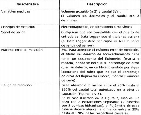 Cuadro 1. Características mínimas que debe tener el flujómetro.