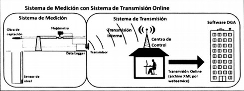 Además, como parte del Centro de Control, debe existir una pieza de software capaz de procesar los datos recibidos, transformarlos en formato XML y enviarlos a la Dirección General de Aguas mediante el consumo de un web service destinado a recepcionar los datos de control de extracciones. Por lo tanto, el Centro de Control debe estar conectado permanentemente a servicio de internet.