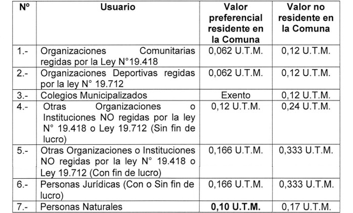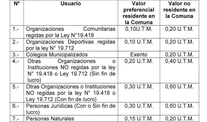 Artículo 18.- El uso exento de pago para Colegios Municipalizados, estará sujeto a los siguientes requisitos: