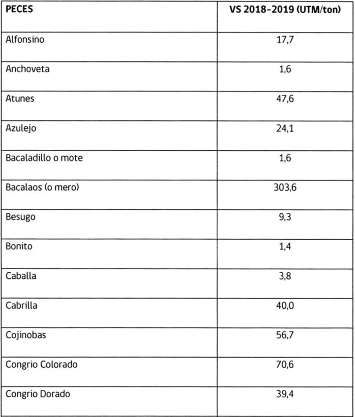 FIJA VALOR DE SANCIÓN DE ESPECIES HIDROBIOLÓGICAS QUE INDICA PERIODO 2018-2019