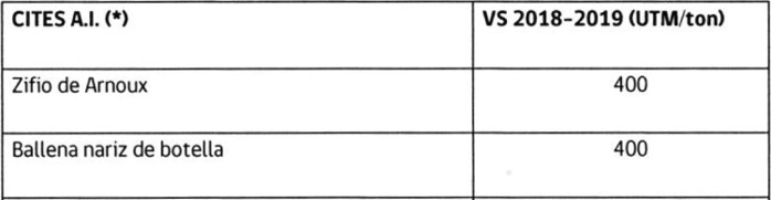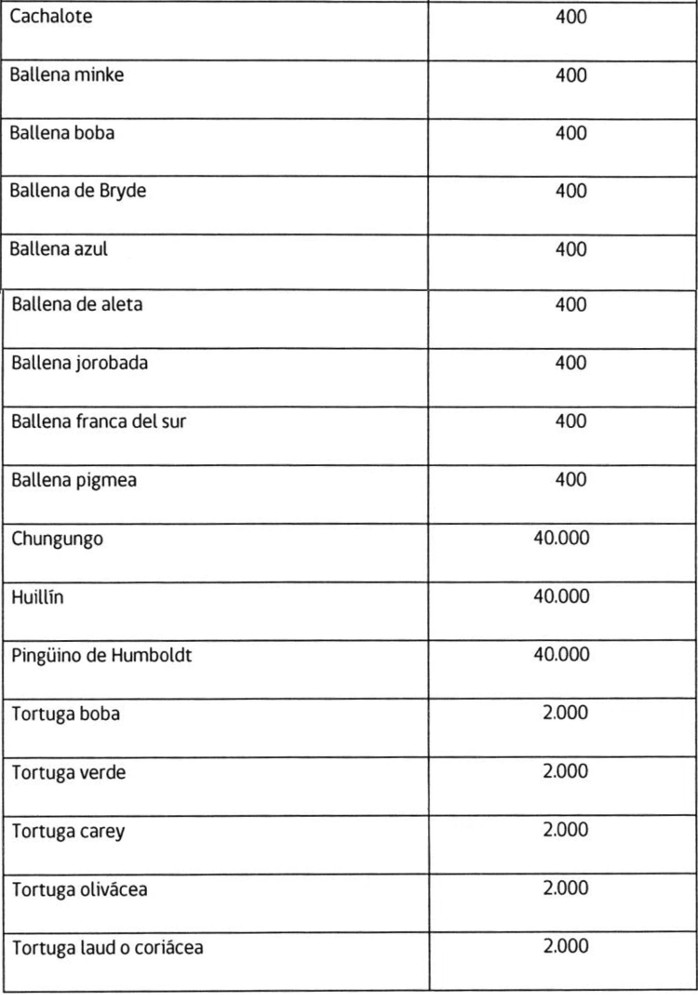 .(*) CITES: Convención sobre el comercio internacional de especies amenazadas de flora y fauna silvestres, especies susceptibles de ser capturadas en Chile.