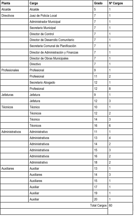 Artículo 6. Fíjese la planta de la Ilustre Municipalidad de Santa Juana: