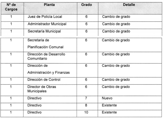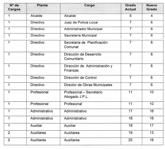 Artículo 4: Establécese la planta de la Municipalidad de Freire, regidos por la ley Nº 18.883 como a continuación se señala: