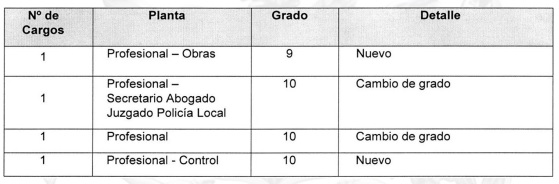 5.1. Profesional de Obras grado 9º: Para ocupar este cargo, se deberá estar en posesión de un profesional Constructor Civil y/o Ingeniero Constructor y acreditar experiencia de al menos 3 años en el área de obras municipales.