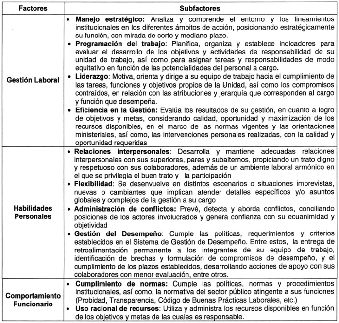 1. Factores y Subfactores de Calificación Estamento Directivo y Profesionales con personal a su cargo.