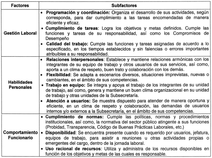 . 3. Factores y Subfactores de Calificación Estamento Administrativo.