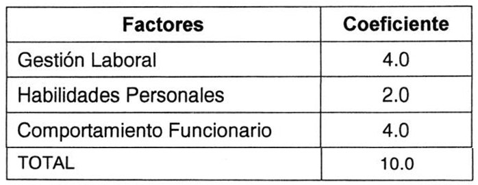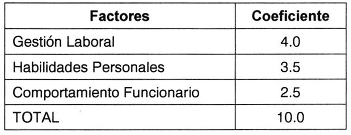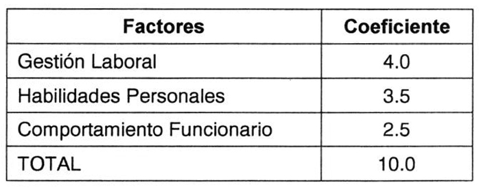 1. Factores de ponderación para Directivos y Profesionales con personal a cargo.