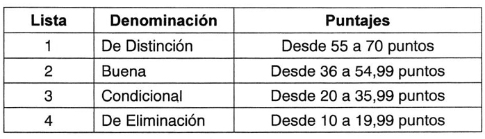 . Artículo 6°.- Listas de calificación. Los funcionarios serán ubicados de acuerdo a su puntaje en una de las siguientes listas: