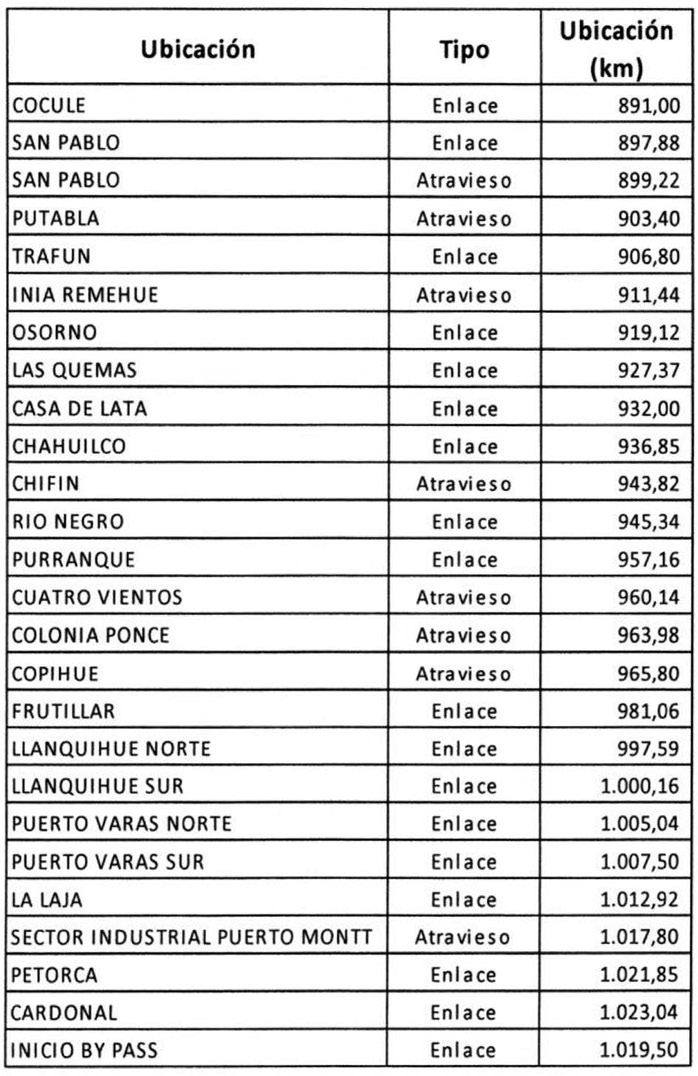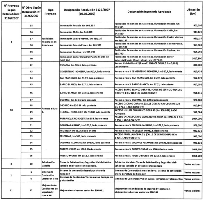- El decreto supremo MOP N° 1.112, de fecha 14 de noviembre de 1997, que adjudicó el contrato de concesión para la ejecución, conservación y explotación de las obras públicas fiscales comprendidas entre los Km. 890,00 y 1.020,637 de la Ruta 5 Sur y entre los Km. 1.018,500 de la Ruta 5 Sur y 1.023,788 del Proyecto By Pass Puerto Montt, denominadas "Concesión Internacional Ruta 5 Tramo Río Bueno - Puerto Montt".