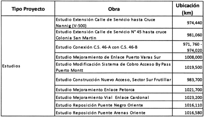13° Que mediante oficio Ord. N° 051/010, de fecha 2 de febrero de 2017, el Jefe de la División de Evaluación Social de Inversiones del Ministerio de Desarrollo Social informó a la Jefa de Pasivos Contingentes y Concesiones de la Dirección de Presupuestos del Ministerio de Hacienda, el resultado del análisis del proyecto "Concesión Ruta 5, Tramo Río Bueno - Puerto Montt" que se encuentra dentro del Plan de Mejoramiento de la Ruta 5, el cual concluyó que se recomienda favorablemente la admisibilidad y pertinencia para el desarrollo de los estudios de ingeniería de la totalidad de las iniciativas contempladas. Adicionalmente, en el citado informe se establece como requisito para la etapa de ingeniería, la evaluación socioeconómica de las iniciativas de inversión, según el detalle que adjuntó, indicando que la aprobación de la etapa de ejecución de las obras quedará sujeta a los resultados obtenidos de dicha evaluación socioeconómica, el cual será el hito de control establecido para asegurar que los proyectos a ejecutar son convenientes para la sociedad y contribuyen al bienestar social.
