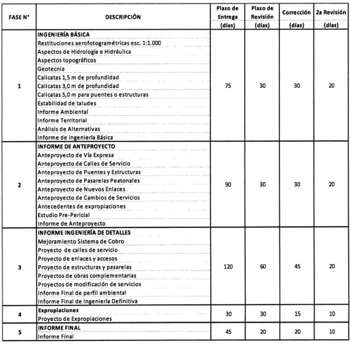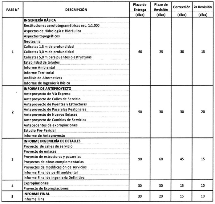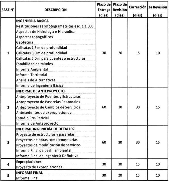 vi) Desarrollar los proyectos de ingeniería señalados en la Tabla N° 4 siguiente, denominados en conjunto como "PID G4: Servicialidad", de acuerdo a los "Términos de Referencia PID Servicialidad", que adjuntó el Inspector Fiscal en el citado oficio Ord. N° 415/EXPL. RB-PM/2017.