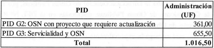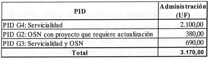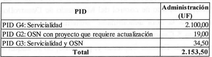 . Se deja constancia que, producto de lo señalado en el penúltimo párrafo del numeral 7.1 y del numeral 7.2 del presente decreto supremo, esto es, que fueron rechazadas la totalidad de las cotizaciones presentadas en los procesos de cotización llevados a cabo para el desarrollo del "PID G2: OSN con proyecto que requiere actualización" y para el desarrollo del "PID G3: Servicialidad y OSN", el monto total y definitivo por concepto de administración y control del desarrollo de los proyectos de ingeniería dispuestos en el N° 1 del presente decreto supremo asciende a la cantidad única y total de UF 2.153,50 (Dos Mil Ciento Cincuenta y Tres Coma Cincuenta Unidades de Fomento), neta de IVA, según el siguiente detalle: