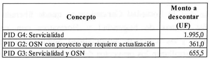 11.1 El monto máximo que reconocerá el MOP por concepto del desarrollo del "PID G2: OSN con proyecto que requiere actualización" y "PID G3: Servicialidad y OSN", se fija en la cantidad de UF 25.800,02 (Veinticinco Mil Ochocientas Coma Cero Dos Unidades de Fomento), neta de IVA.