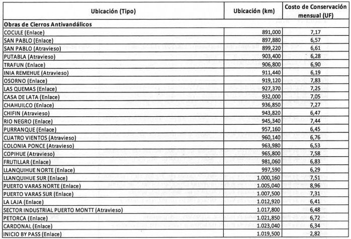 .vii) Ejecutar, conservar, mantener, operar y explotar las obras singularizadas en la Tabla N° 5 siguiente, denominada como "Obras de Cierros Antivandálicos", de acuerdo al documento "Especificaciones Técnicas para la ejecución de las Obras de Cierros Antivandálicos" que adjuntó el Inspector Fiscal en el citado oficio Ord. N° 415/EXPL. RB-PM/2017.