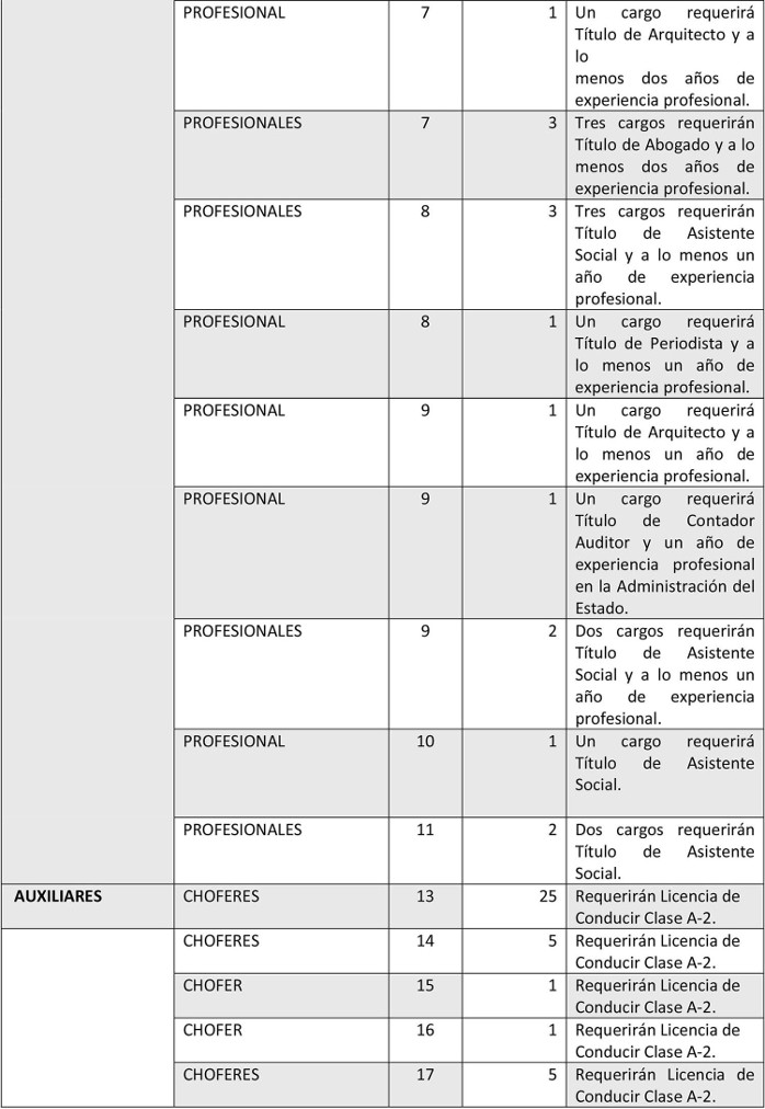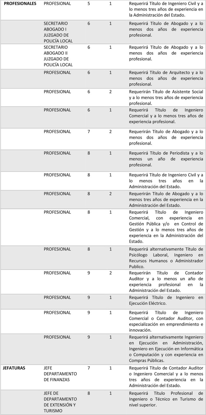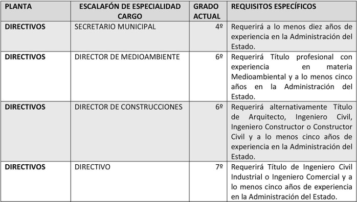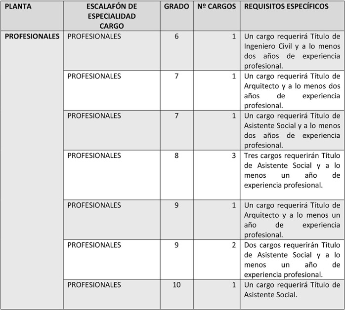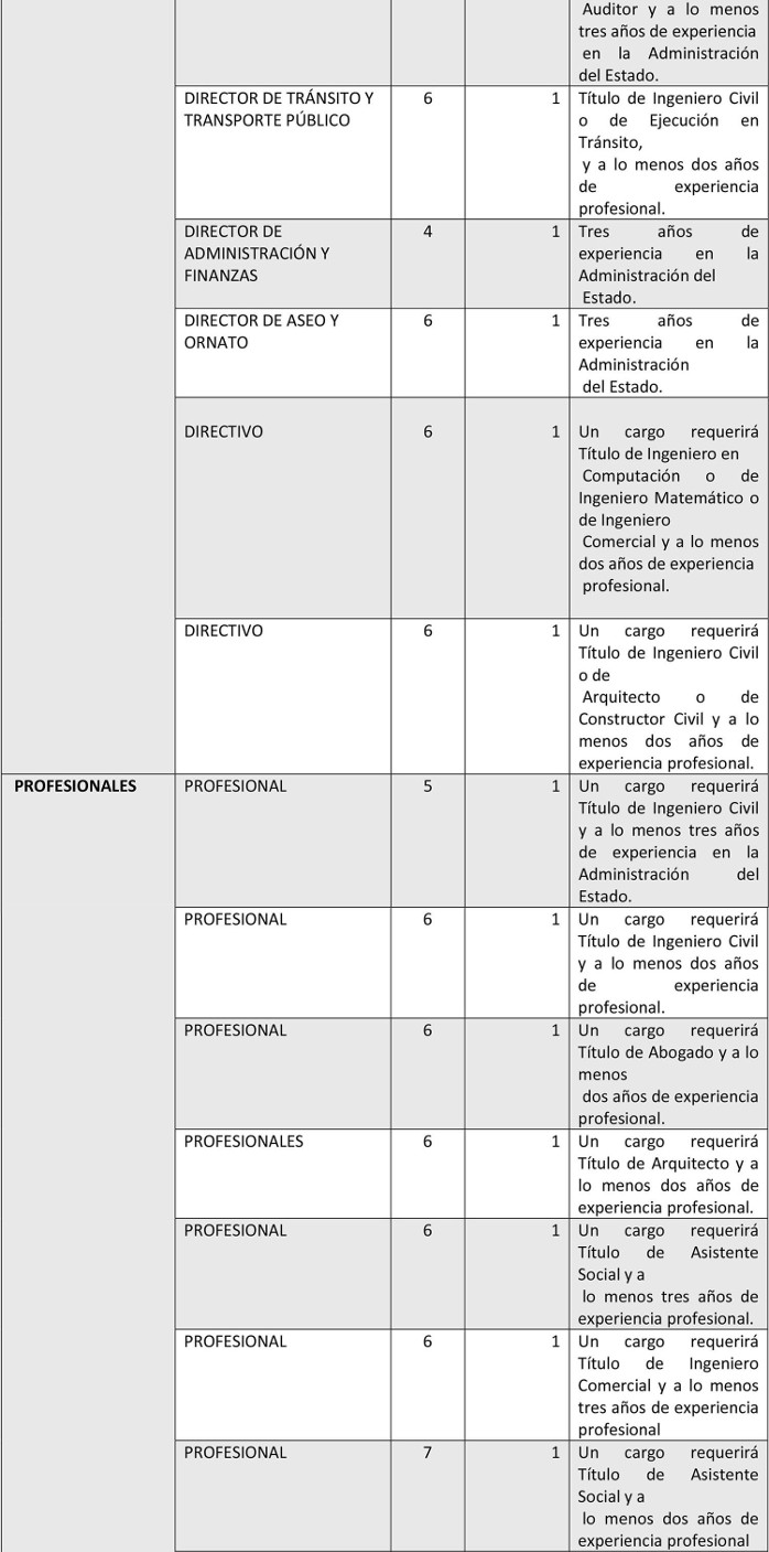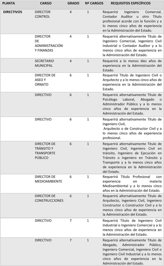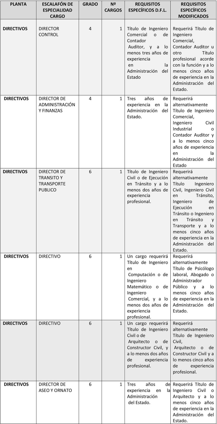 . Artículo 3º: Los siguientes cargos de la actual planta de personal municipal, poseen requisitos específicos de acuerdo a lo establecido en el DFL Nº 278-19.321 de 1994.