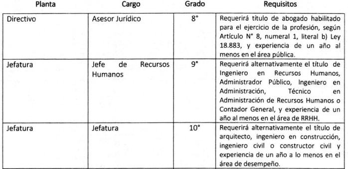Artículo 3º.- Fíjense los siguientes requisitos específicos para el desempeño de los cargos que se mencionan: