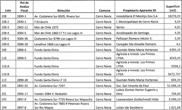 b) Que, para la correcta ejecución del proyecto Construcción Costanera Sur Poniente Etapa 2, tramo: Diagonal Reny - Américo Vespucio, comuna de Cerro Navia, Código Bip 30112517-0, que tiene como objetivo consolidar la vialidad de Costanera Sur, entre Diagonal Reny y Avenida Américo Vespucio, materializando un perfil completo a lo largo de todo el eje, homogeneizando el estándar del trazado, e incorporando un diseño urbano que incluye el concepto de accesibilidad universal, es necesario adquirir cuatro nuevos lotes emplazados en la comuna de Cerro Navia, aumentando así la superficie a expropiar señalada en el decreto exento N° 59 (V. y U.), de 2018, singularizado en el considerando anterior.