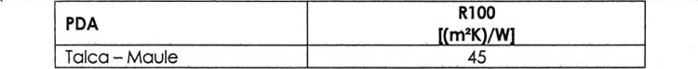 La resistencia térmica R100 del material aislante deberá ser igual o superior, a la señalada en la Tabla 3.