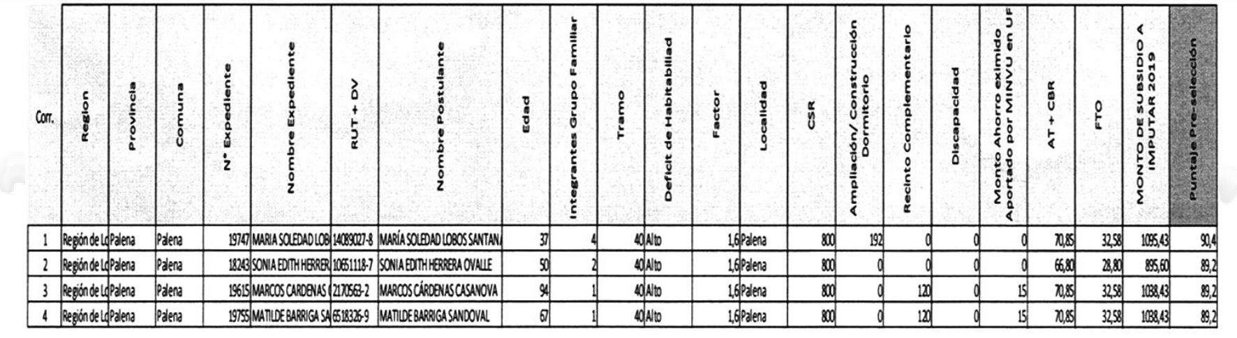 1. Que, los postulantes fueron eliminados de la selección por la causal poseer propiedad habitacional, las que se encuentran declaradas inhábiles por la Dirección de Obras de la Municipalidad de Palena, con fecha 10.10.2018, y por error del sistema de postulación no pudieron acreditarse al momento de la postulación.