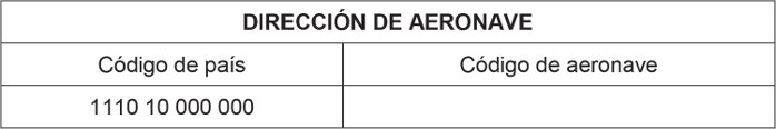 . (1) El formato de toda dirección de aeronave, está constituido por un conjunto de 24 bits, divididos en dos bloques de 12 dígitos cada uno. Los primeros 12 corresponden al código de país y los otros 12 identificarán a la aeronave en particular.