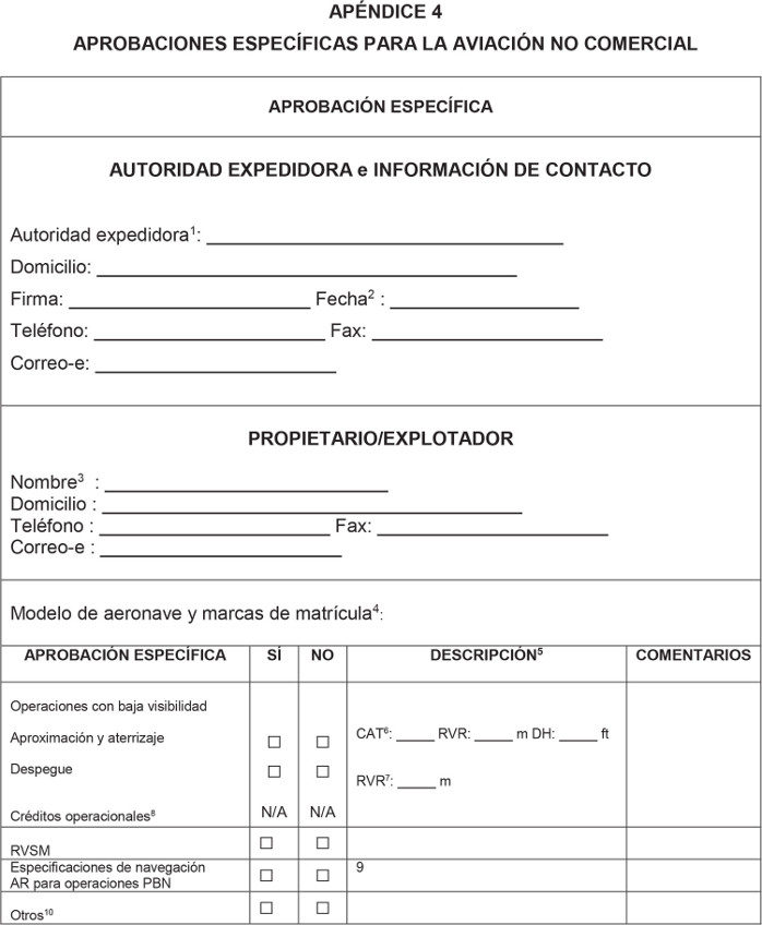 10. Aquí pueden anotarse otras aprobaciones específicas o datos utilizando una línea (o un bloque de varias líneas) por aprobación (p. ej., aprobación específica para operaciones de aproximación, MNPS).