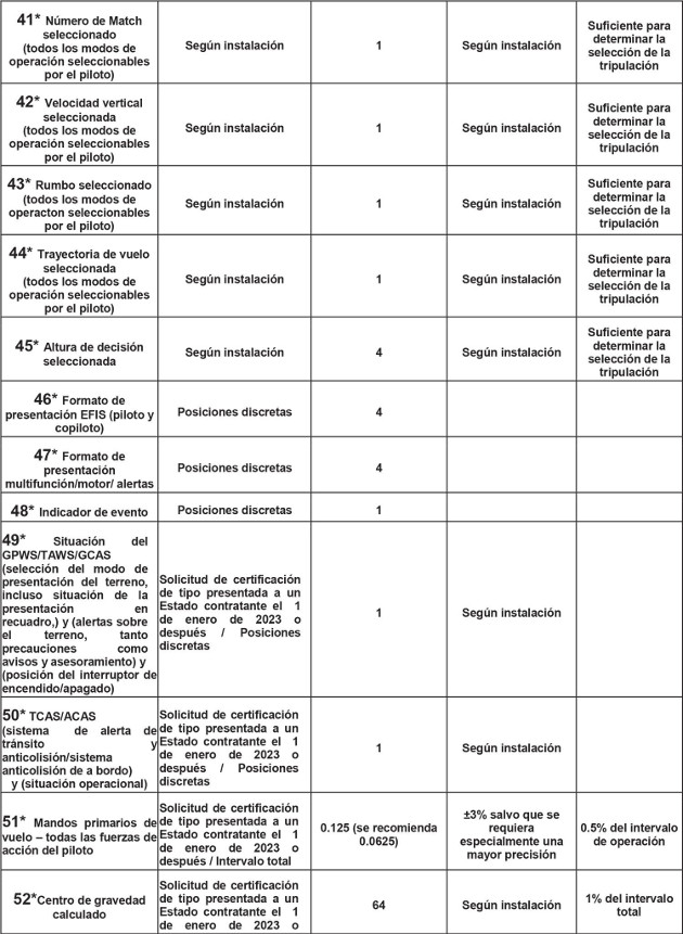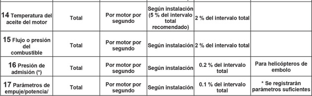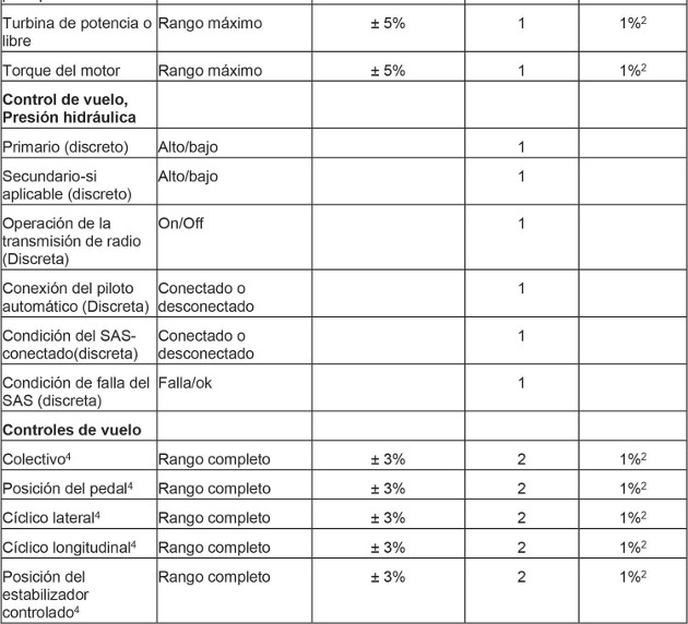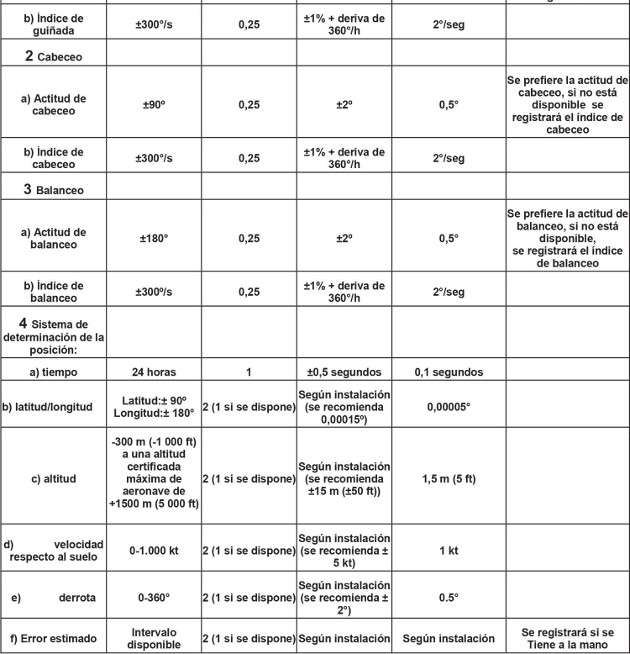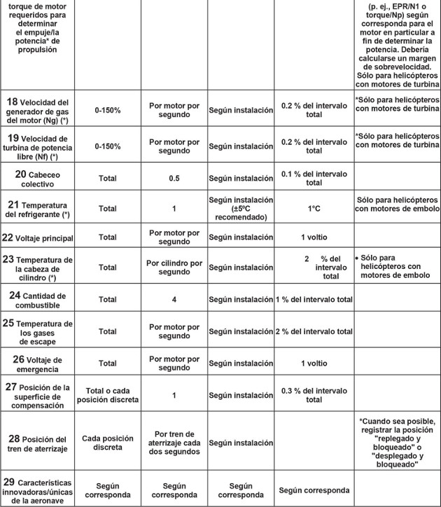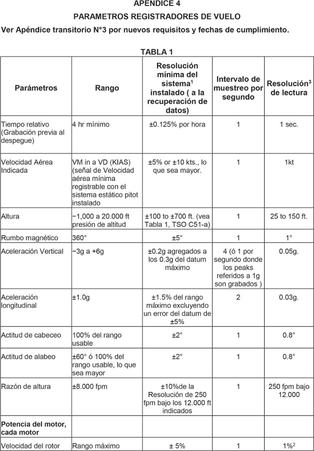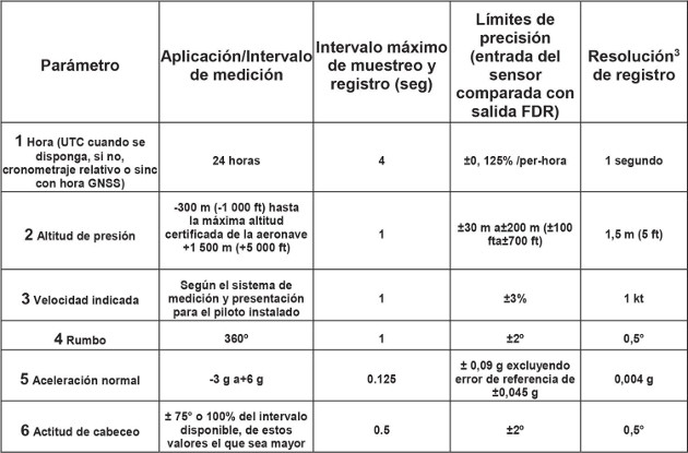 (-1) Los parámetros que debe registrar un FDR o ADRS se encuentran en Tabla 2 y 4 del Apéndice Transitorio Nº 3.