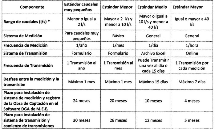 8. Déjase constancia que los titulares de derechos de aprovechamiento de aguas subterráneas pueden emplear un componente de Estándar superior, por ejemplo, a quien se le ordene Estándar Menor podría emplear Transmisión por Formulario, Excel u Online.