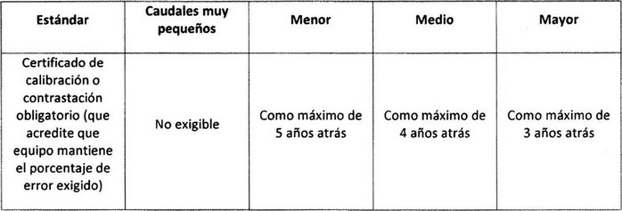 16. Establécese que, los flujómetros que se encuentren instalados en las obras de captación, deberán presentar un certificado o documento emitido por un laboratorio, empresa o profesional calificado en el rubro, que demuestre su calibración actualizada con el objetivo de acreditar los porcentajes de error en las mediciones del equipo, lo cual deberá cumplir dentro de los plazos que se establecen en el Cuadro N° 2: