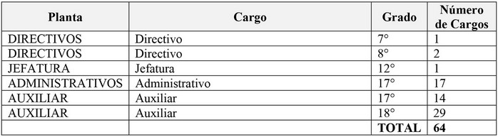 b. Contempla la totalidad de los cargos de la actual planta de personal, salvo 64 cargos de los escalafones de directivos, jefaturas, administrativos y auxiliares, que a esta fecha se encuentran vacantes, los que se suprimen en la nueva planta municipal.