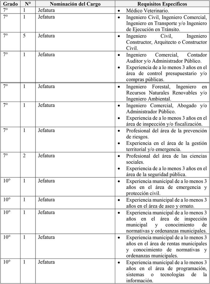 3. Que, leyes posteriores dispusieron que las municipalidades crearan otros cargos en la planta municipal. De esta manera, se crearon los siguientes cargos: