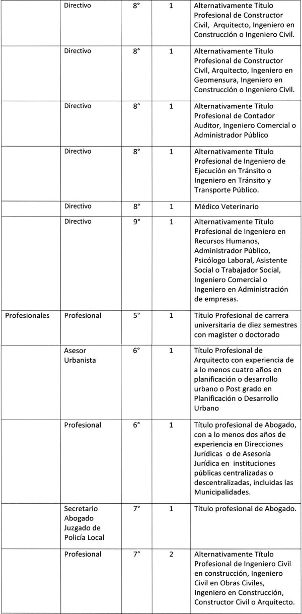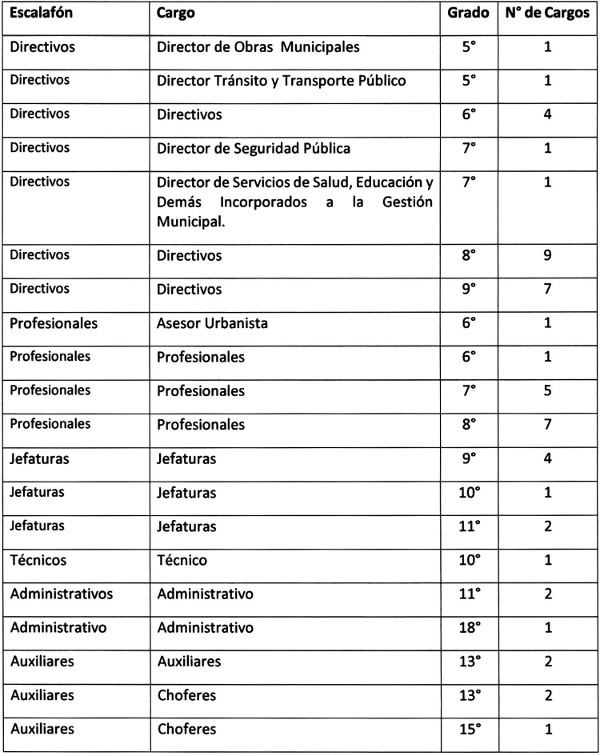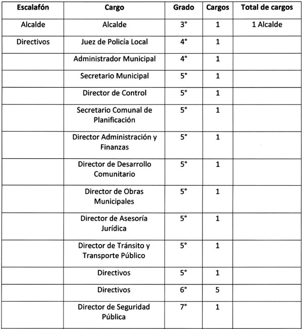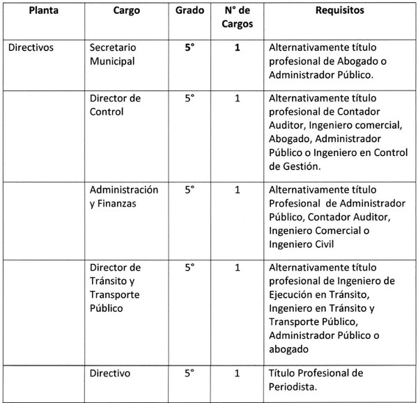 La obligación de crear el cargo de Director de Tránsito, grado 5º debido al aumento de población, lo que provoca un aumento vehicular en la comuna, además del 20% de los ingresos propios permanentes que provienen de los permisos de Circulación y Licencias de Conducir, lo que hace indispensable que la función sea conducida por un Directivo con la capacidad idónea en el cargo;