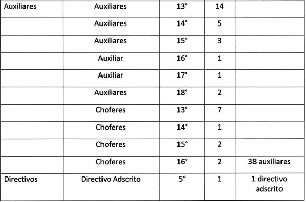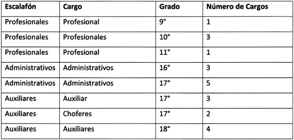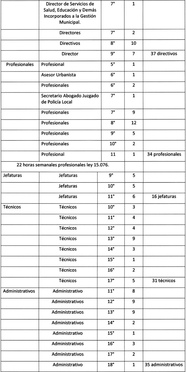 . La planta contempla un total de 192 cargos más 22 horas semanales profesionales ley 15.076.