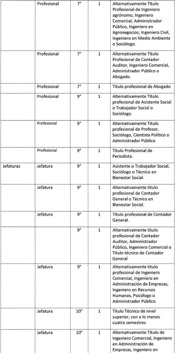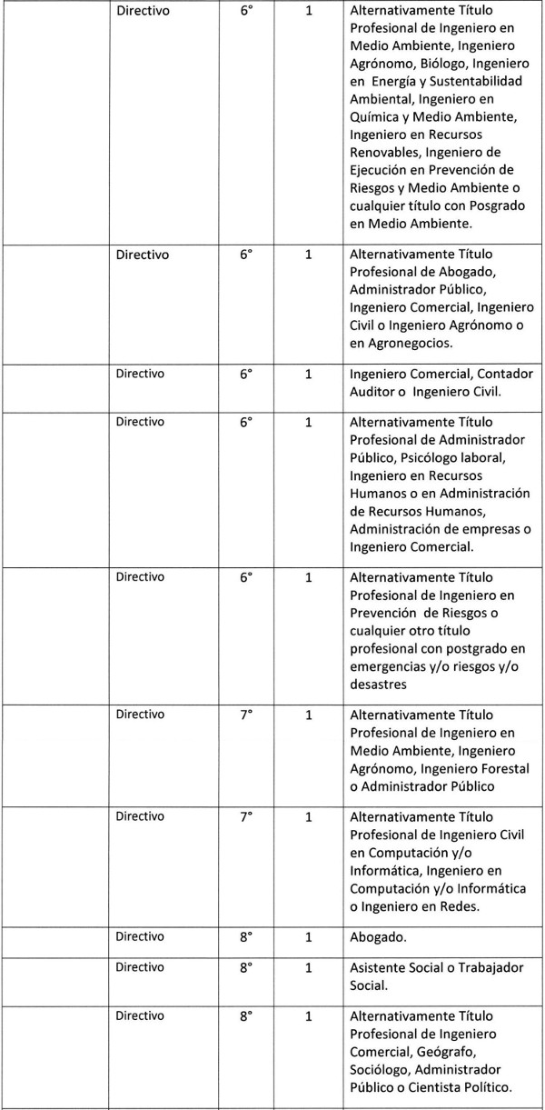 Artículo 7º.- Fíjense los siguientes requisitos específicos para el desempeño de los cargos que se mencionan: