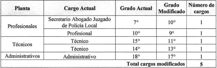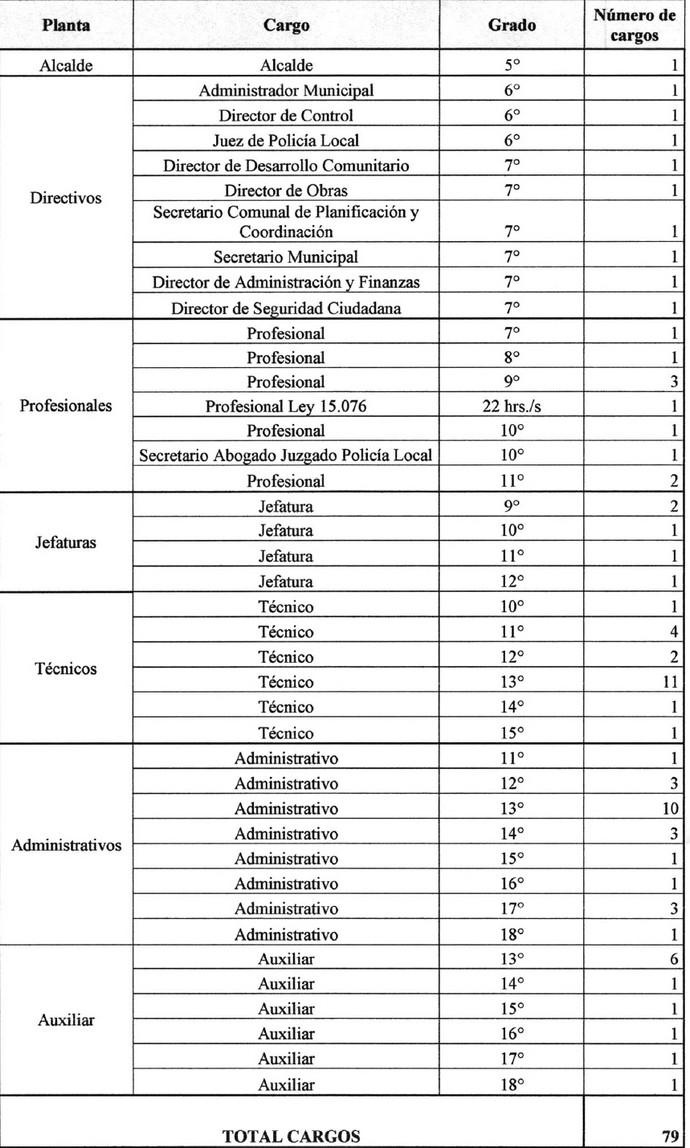 Artículo 3º: Modifíquese la planta de personal de la Ilustre Municipalidad de La Ligua, quedando establecida de la siguiente manera: