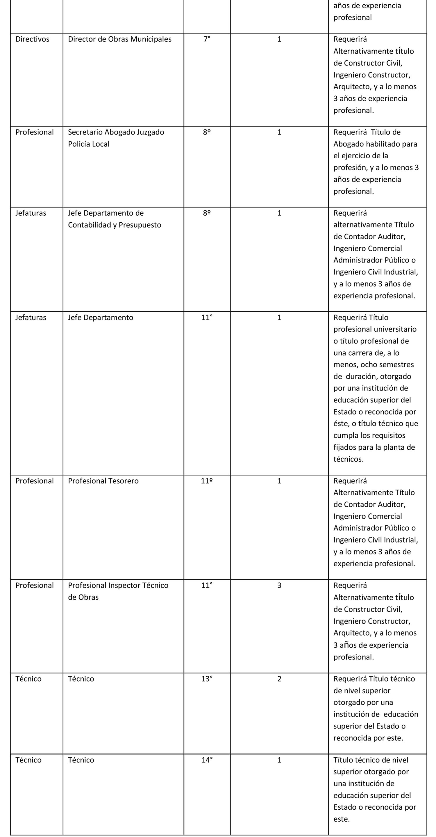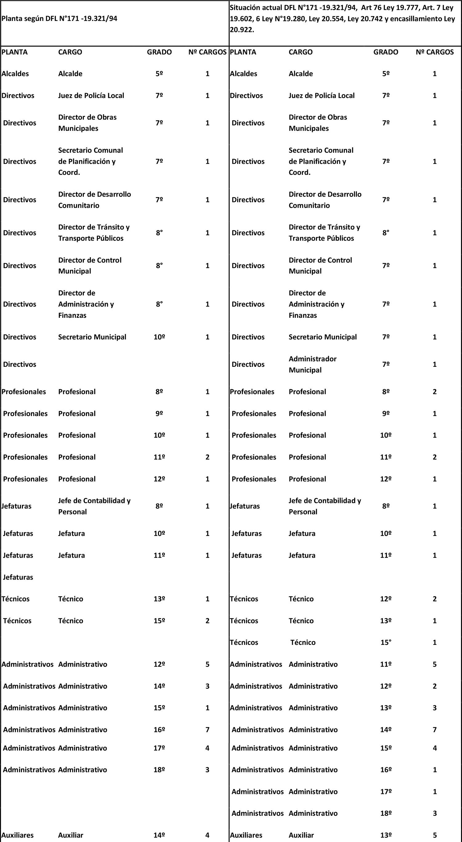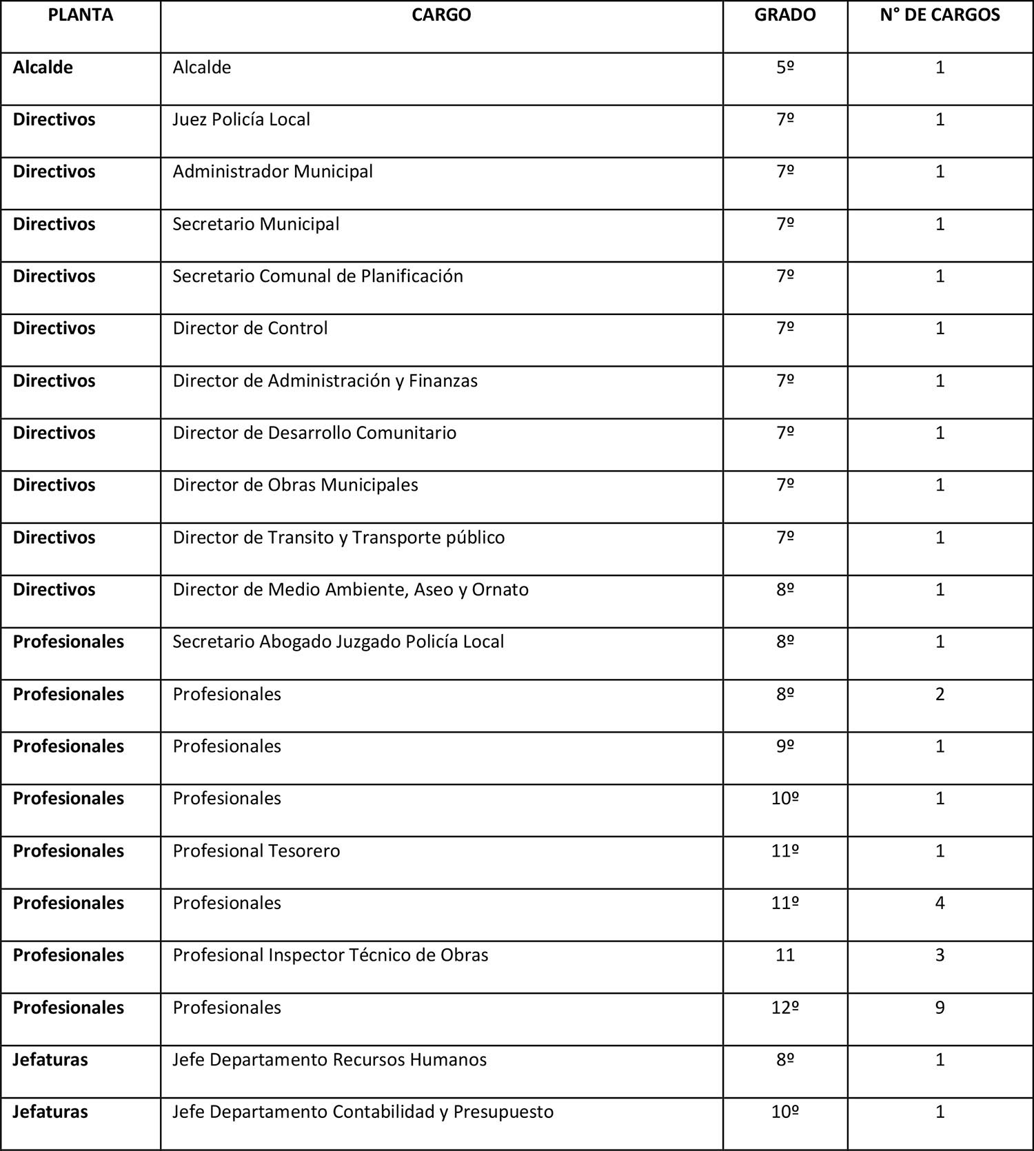 Artículo 2: Establézcase la planta de personal de la Municipalidad de Curanilahue: