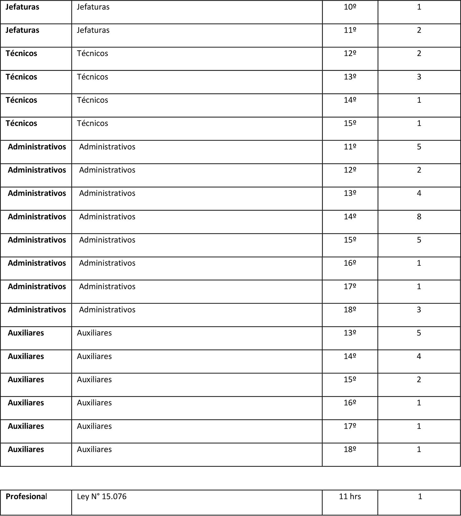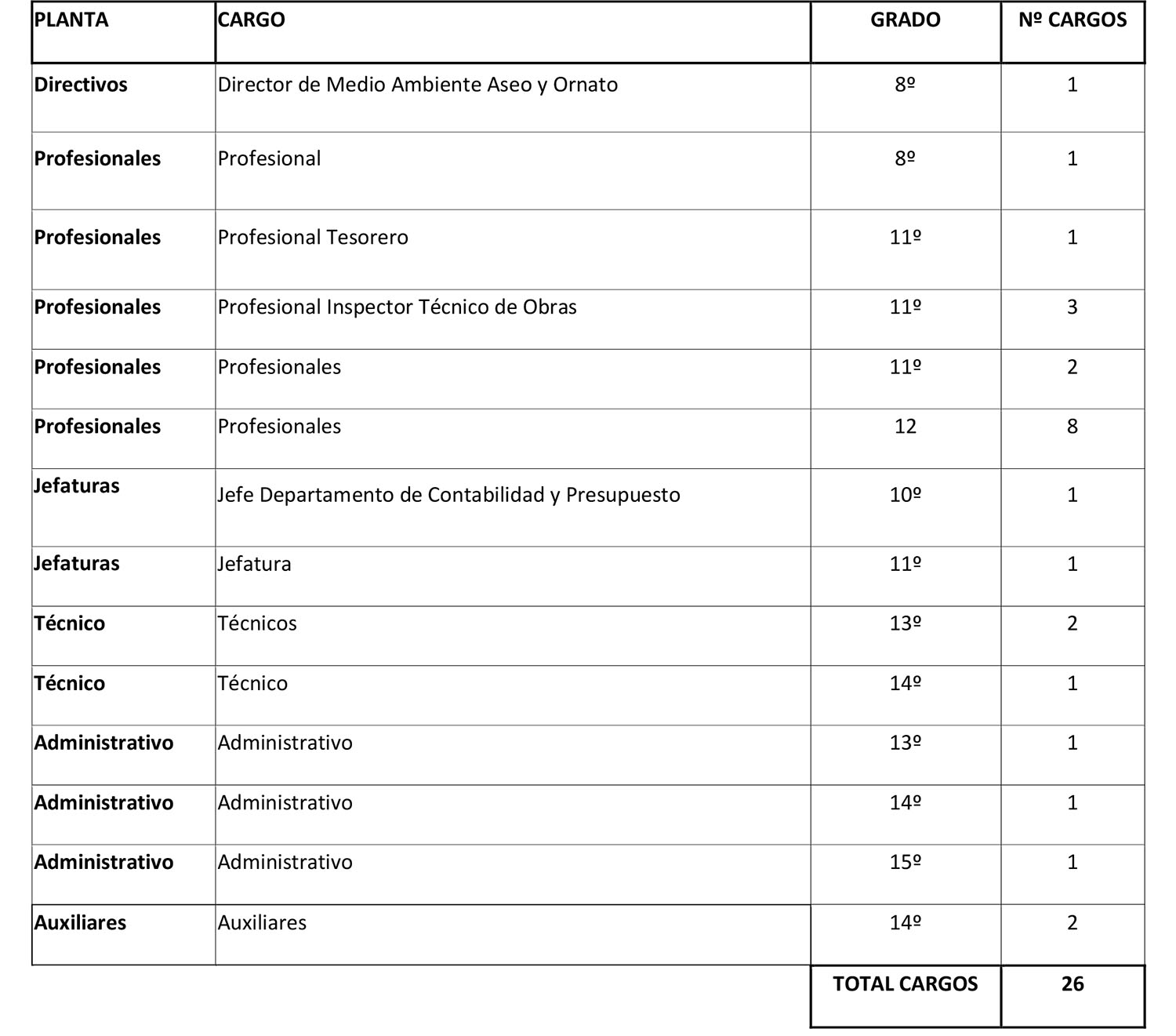 El total de cargos de la planta de la Municipalidad de Curanilahue será de 88 más 1 profesional de la ley 15.076 de 11 horas semanales, respectivamente.