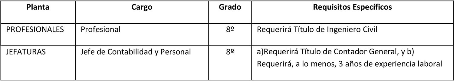 Artículo 3: Fíjese los siguientes requisitos específicos para el desempeño de los cargos que se mencionan: