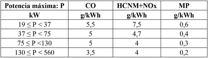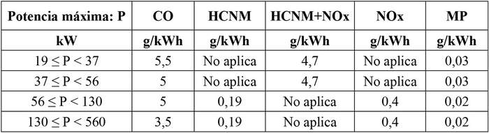 Tabla II-4: Límites máximos de emisión provenientes del sistema de escape en gramos por kilowatt hora (g/kWh).