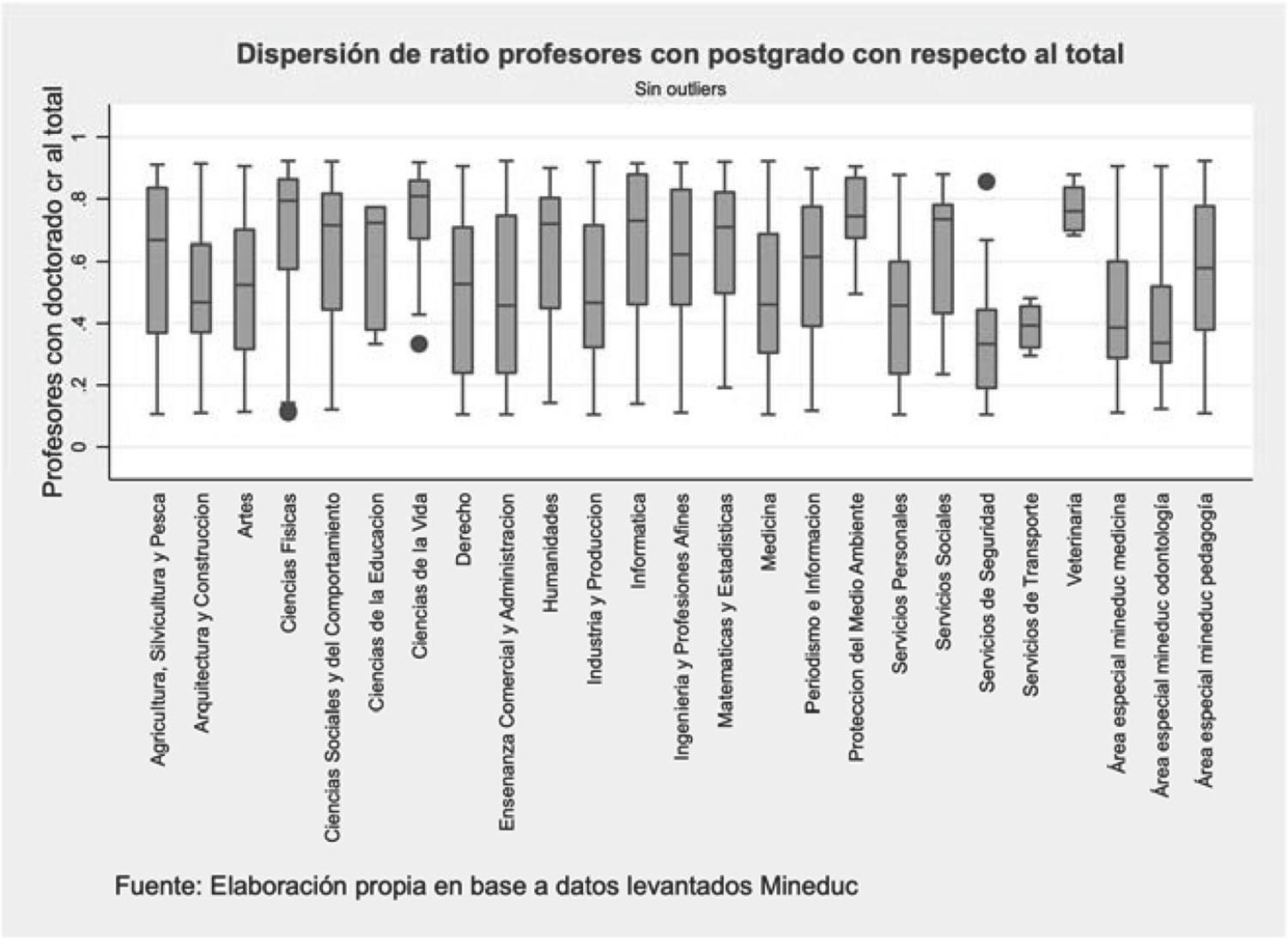 2. En materia de ponderadores institucionales, esta Subsecretaría estima que el relativo a complejidad docente a nivel institucional se encuentra en línea con la experiencia internacional, referente a medir el porcentaje del personal académico que cuenta con el grado de doctor, sin diferenciar dentro de ese indicador entre carreras o facultades. La propuesta de la Comisión, además, presentaría algunas dificultades técnicas para su implementación, tales como la adecuada contabilización de docentes que pudiesen realizar clases en más de una carrera o, incluso, en más de una facultad.