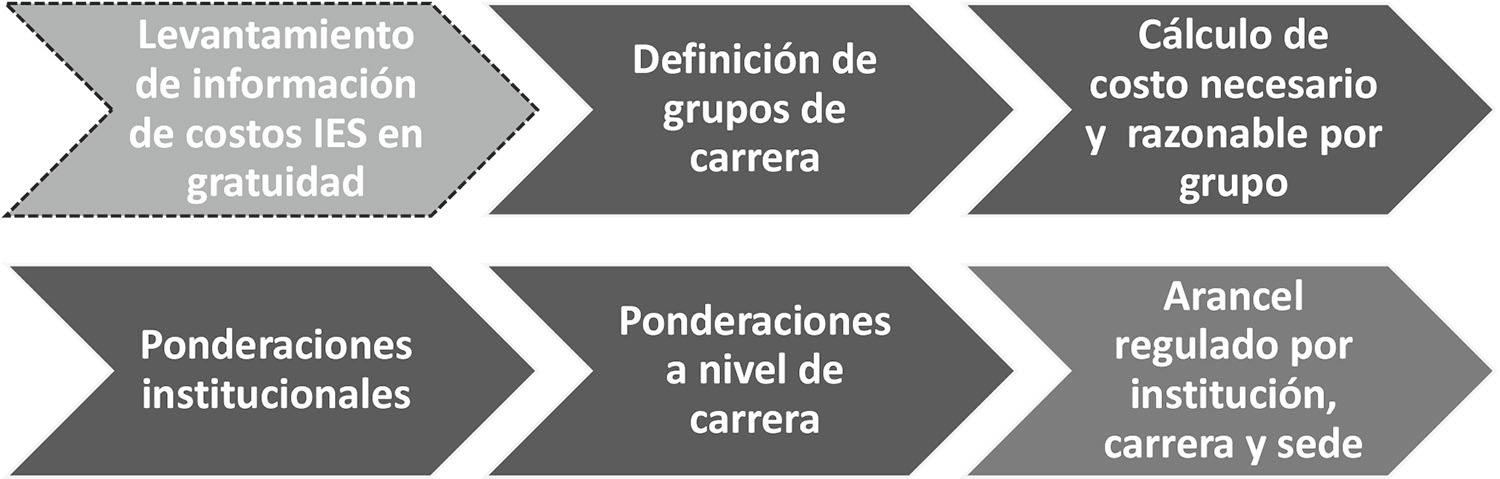 El presente documento se estructura en dos grandes secciones. La primera contiene los antecedentes de la metodología, exponiendo la que actualmente se utiliza en la determinación del arancel regulado, el proceso previo de recolección de información y los análisis realizados en base a la información de costos levantada por la Subsecretaría. La siguiente sección presenta las bases técnicas propiamente tal, con las consideraciones necesarias para establecer los grupos de carreras, su aplicación y los primeros grupos de carreras que serán regulados, al igual que los criterios de cálculo junto a la fórmula de determinación del arancel regulado que sustentará el financiamiento institucional para la gratuidad.