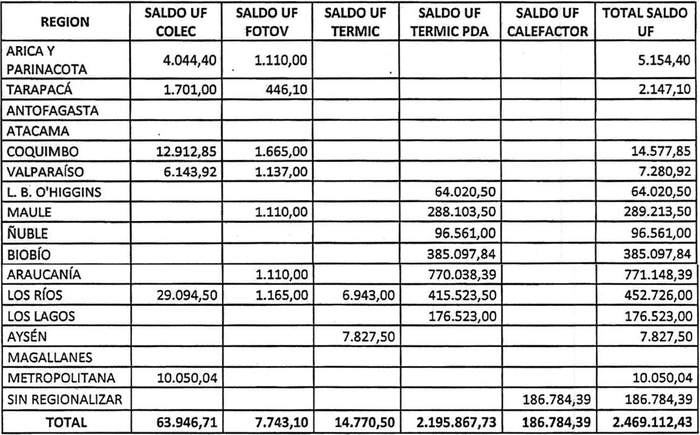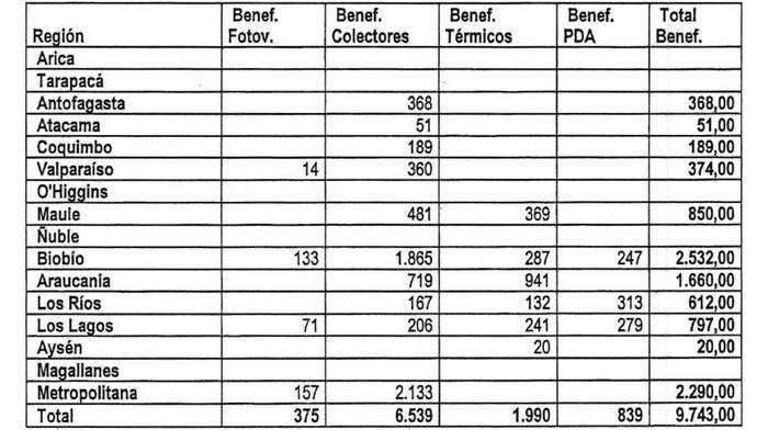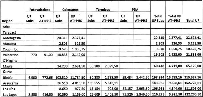 Este cuadro puede sufrir modificaciones, pues se le descontarán todos los subsidios que se asignen directamente en estas líneas. Además, respecto de los Proyectos del Título II, de Obras de Innovación de Eficiencia Energética para instalar Calefactores, en este cuadro se define un monto sin regionalizar para su selección, el que se distribuirá proporcionalmente, según la cantidad de proyectos de esta línea que se presenten en cada región.