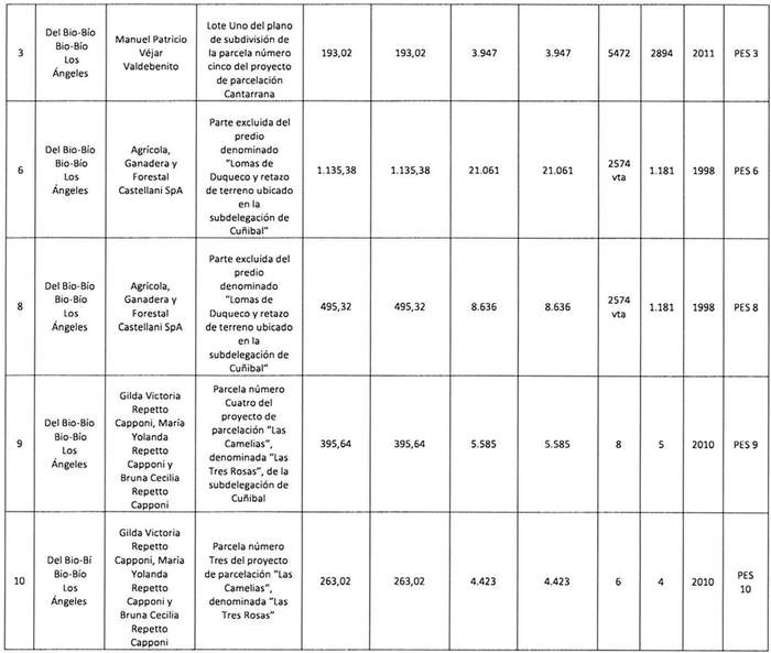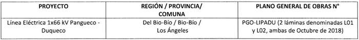 Por último, el proyecto "Línea Eléctrica 1x66 kV Pangueco - Duqueco" afecta una superficie total de 76.847 m2, de los cuales se solicita imposición de servidumbre eléctrica por una superficie de 72.422 m2.