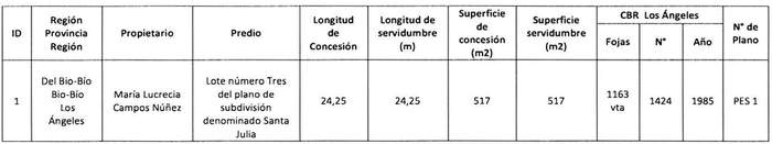 En particular, el Tramo I de la Línea 1x66 kV Pangueco - Duqueco, cuya concesión se otorga en el presente decreto, ocupará seis bienes particulares, respecto de los cuales será necesario constituir servidumbre eléctrica en los términos que señala el artículo 7º de este acto administrativo, además de lo dispuesto en la Ley General de Servicios Eléctricos.