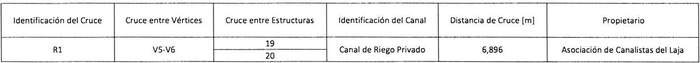 Asimismo, la línea presenta los siguientes cruces con otras instalaciones existentes: