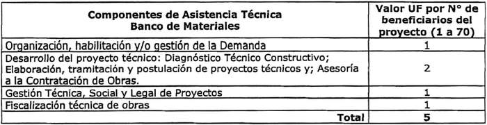 8. Que la Asistencia Técnica contemplada para el presente proyecto se ajusta a lo dispuesto por la resolución exenta N° 1.237 (V. y U.), de 2019, para proyectos de Banco de Materiales.