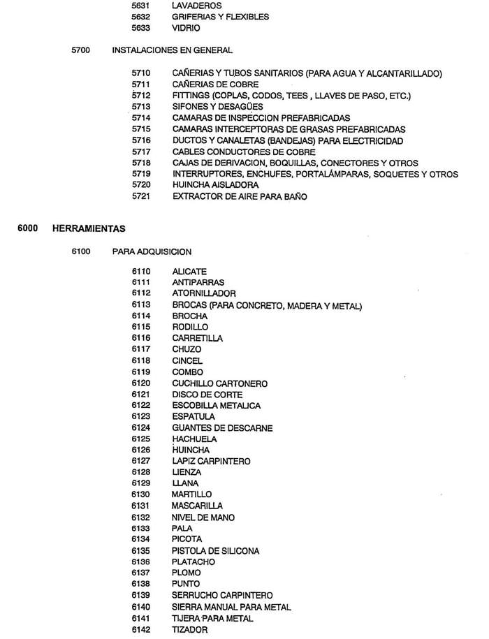 FINANCIAMIENTO MATERIALES DE CONSTRUCCIÓN LISTADO DE MATERIALES Y HERRAMIENTAS PARA ADQUISICIÓN