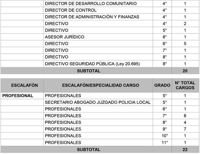 - Cuatro cargos requerirán experiencia de a lo menos 5 años en el sector municipal.