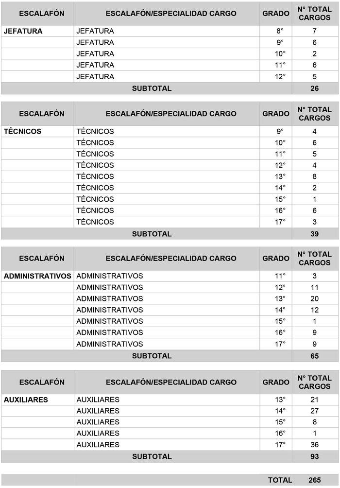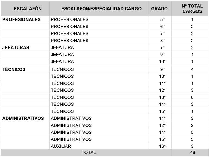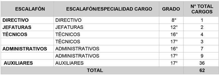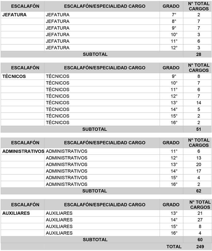 Artículo N° 3: Créanse los siguientes cargos en las plantas profesionales, jefaturas, técnicos, administrativos y auxiliares.