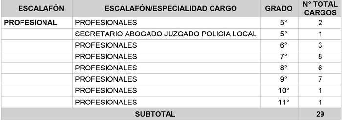 - Profesional grado 8°: seis cargos requerirán de experiencia profesional de a lo menos un año en el sector municipal.