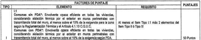 5.3.1. En caso de incluir elementos de eficiencia energética, estos deberán ser evaluados de acuerdo a la siguiente tabla, que detalla lo mencionado en el artículo 11°, Item 4. Tipologías de Viviendas, letra F. Eficiencia Energética, del DS Nº 19 (V. y U.), de 2016: